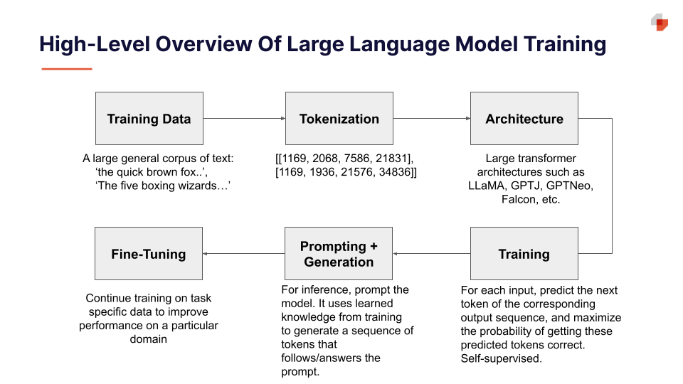 - Fine-tuning: Depending on the specific use case, the language model may undergo additional fine-tuning on domain-specific data to improve its performance in a particular area.