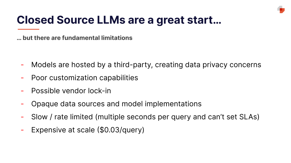 The key advantage of public LLMs is their free usage and open architectures. They can also keep your data private, without any third-party vendor lock-in. With the right tuning and prompting, open source LLMs unlock immense value.